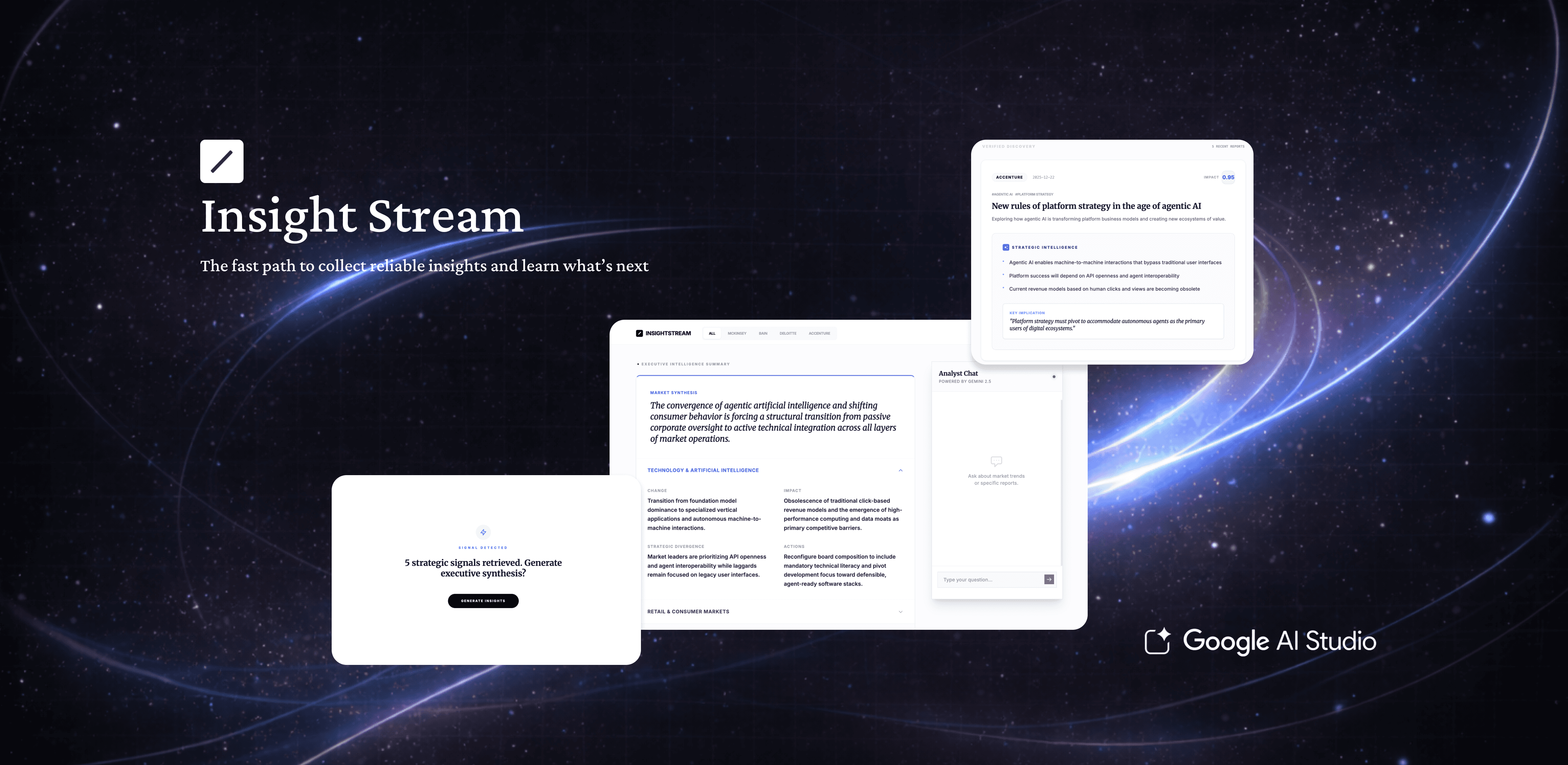 The internet is flooded with information, making it hard to identify real signals from noise. Using Google AI Studio, I created a tool that gathers reports from leading consulting firms like McKinsey and summarizes them into actionable insights.